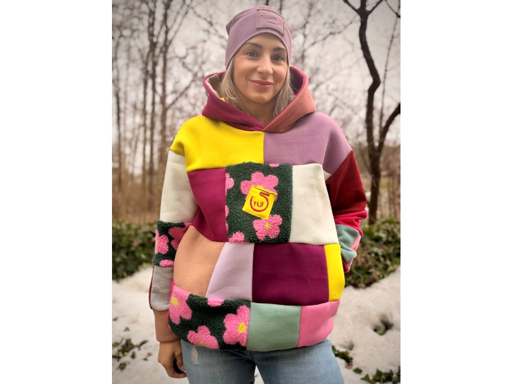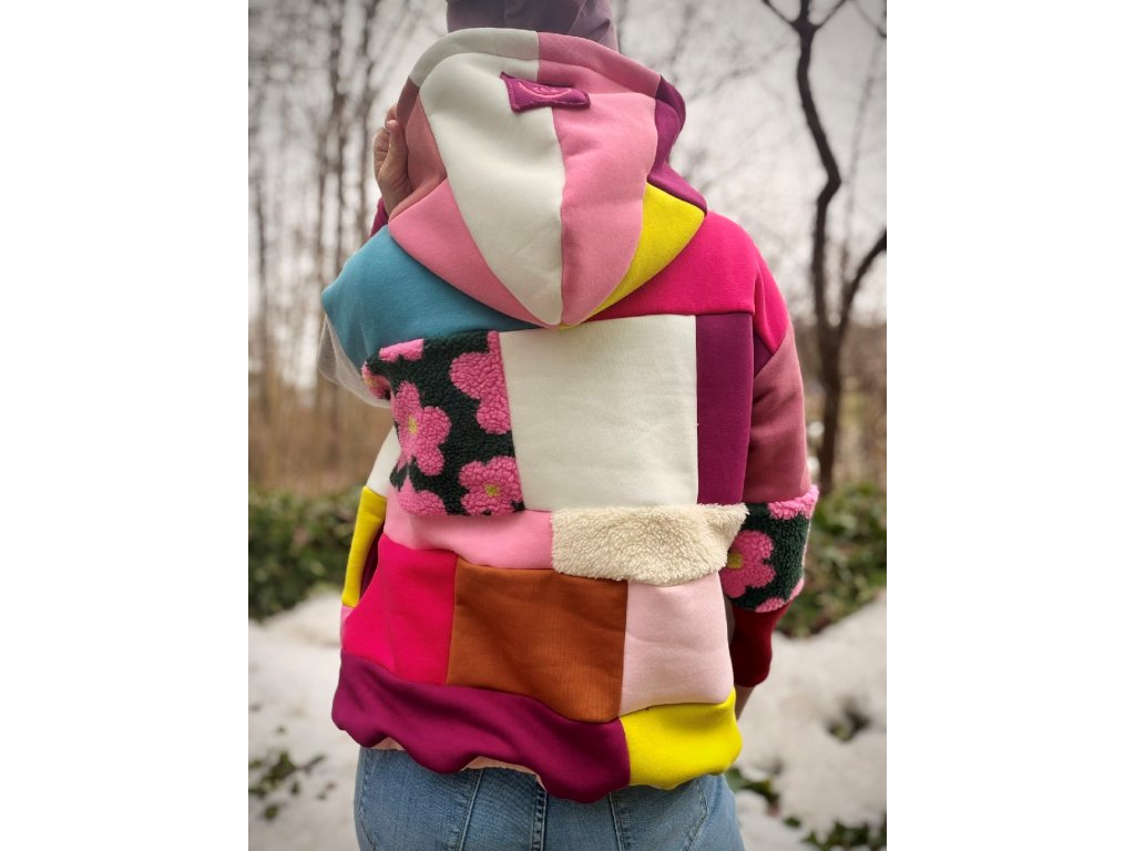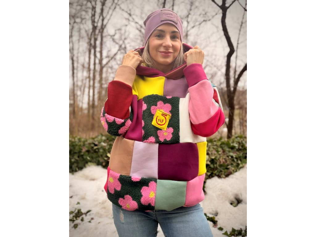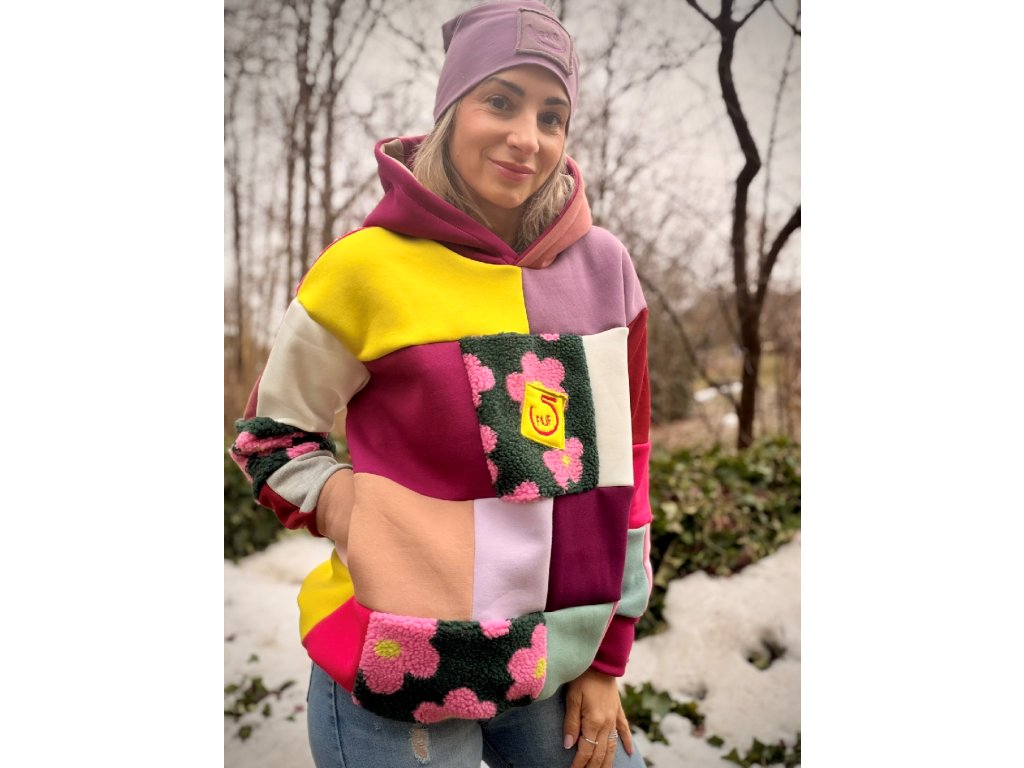 Originální mikina, která rozzáří každý den! Tato mikina je vyrobena z příjemné teplákoviny v pestrém designu. Kombinuje různé barvy a struktury materiálu – hladkou teplákovinu i hebký fleece, díky čemuž je nejen stylová, ale i mimořádně pohodlná.