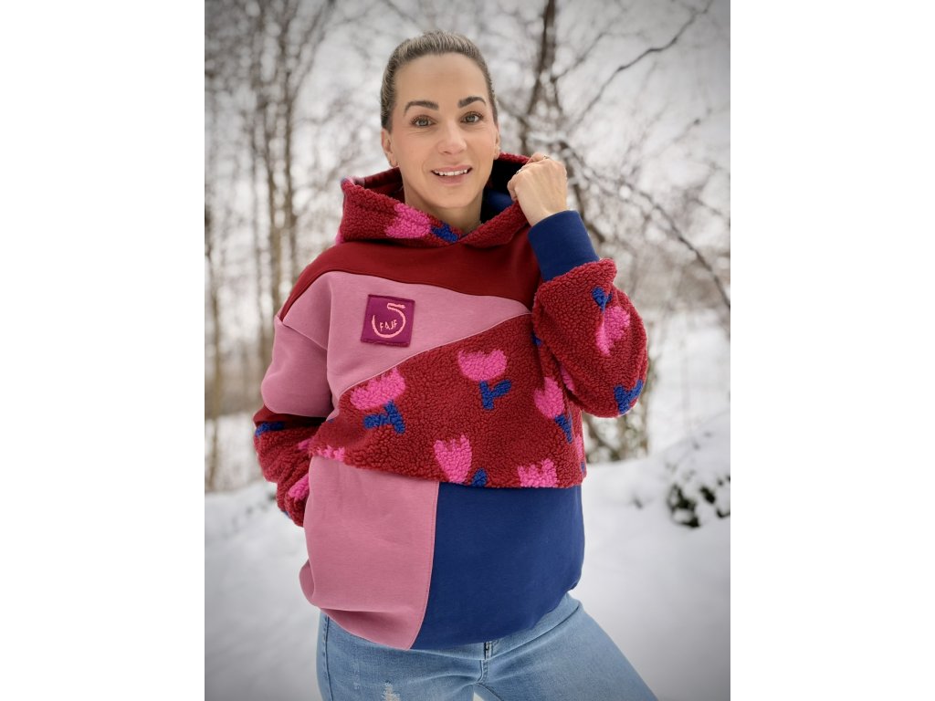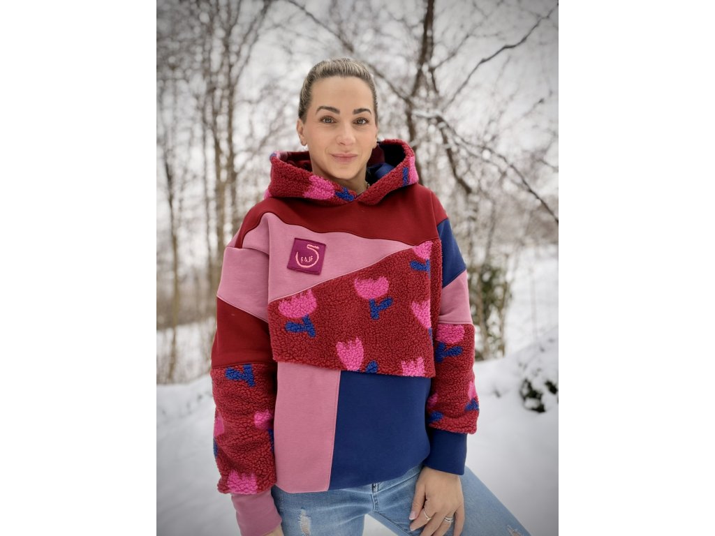 Originální mikina, která rozzáří každý den! Tato mikina je vyrobena z příjemné teplákoviny v pestrém designu. Kombinuje různé barvy a struktury materiálu – hladkou teplákovinu i hebký fleece, díky čemuž je nejen stylová, ale i mimořádně pohodlná.