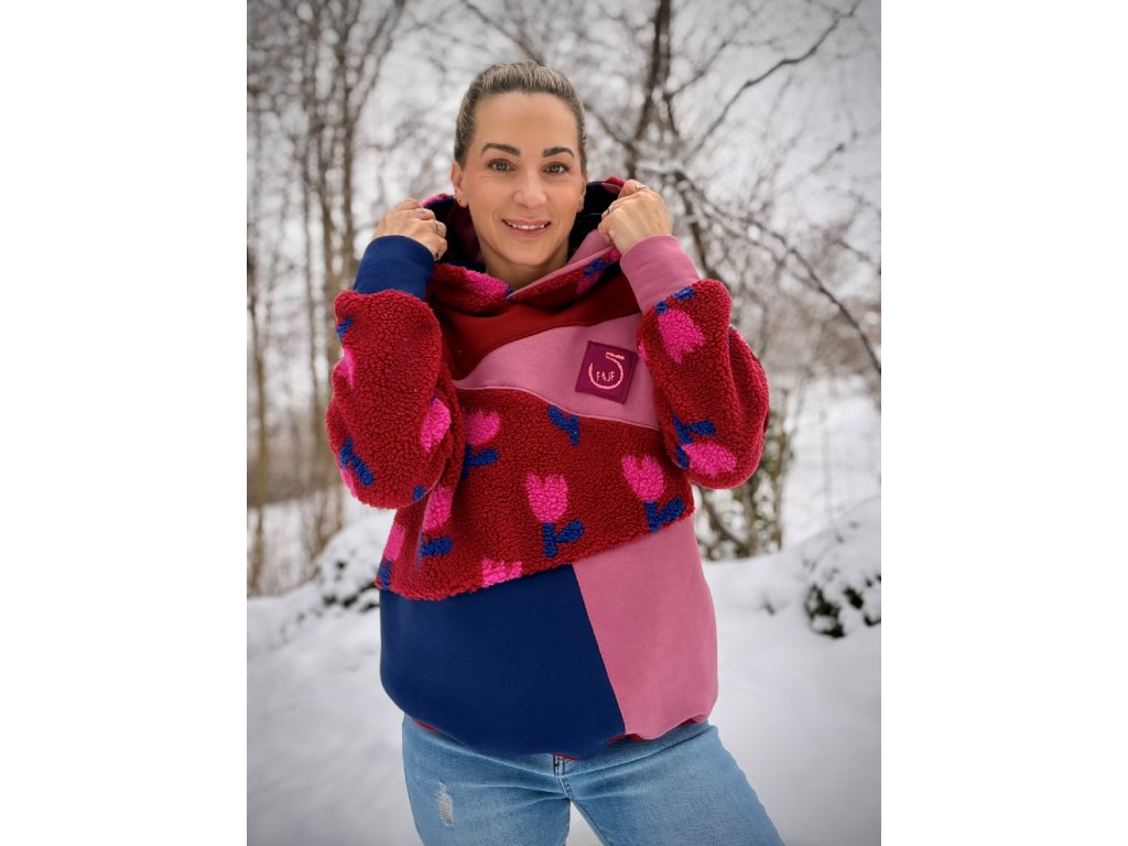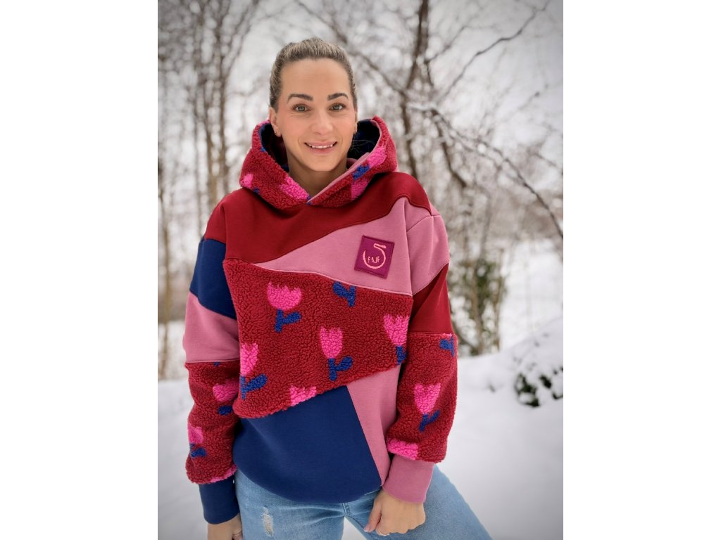 Originální mikina, která rozzáří každý den! Tato mikina je vyrobena z příjemné teplákoviny v pestrém designu. Kombinuje různé barvy a struktury materiálu – hladkou teplákovinu i hebký fleece, díky čemuž je nejen stylová, ale i mimořádně pohodlná.