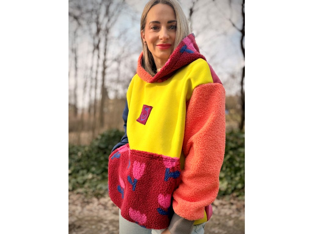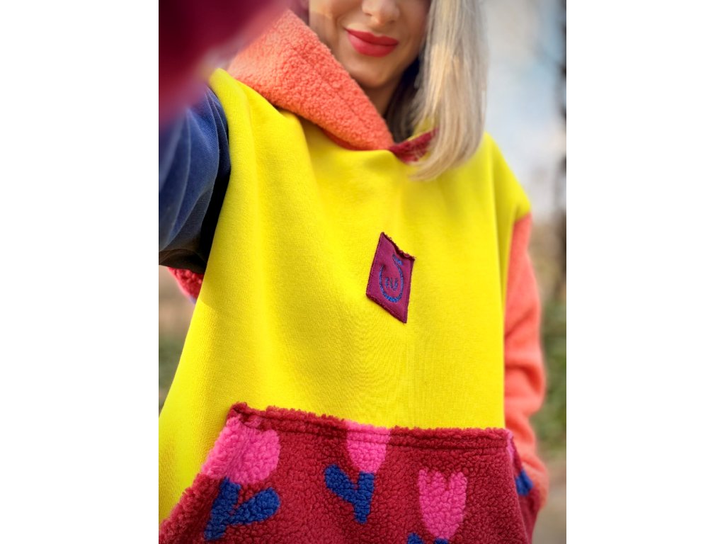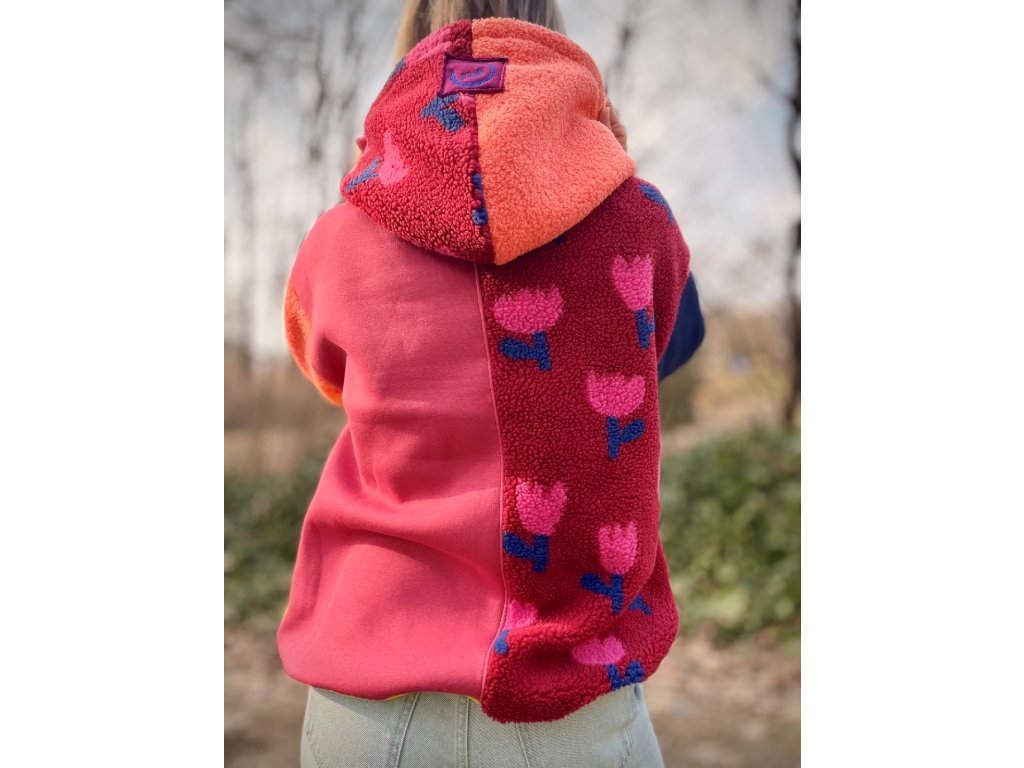 Tahle  originální mikina je přesně ten kousek, který si oblékneš jednou… a už nebudeš chtít sundat. Počesaná teplákovina kombinovaná s hebkým chlupatým materiálem a roztomilým vzorem tulipánu vytváří originální look, který zaujme na první pohled 🌷