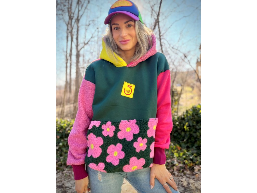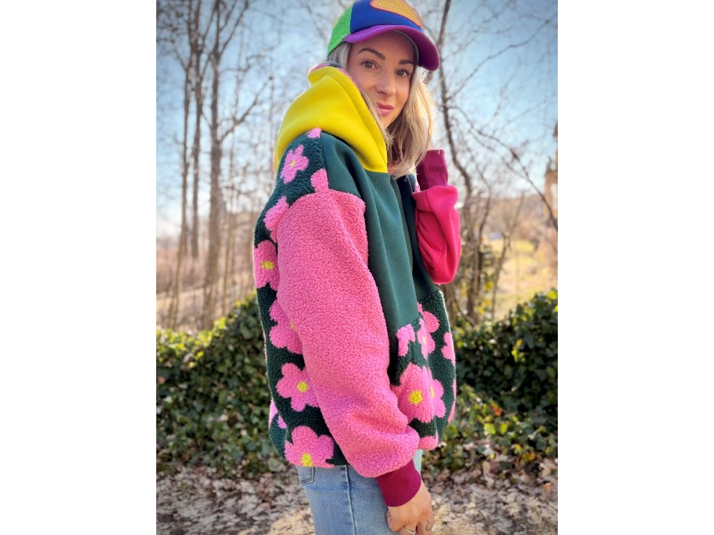 Tahle  originální mikina je přesně ten kousek, který si oblékneš jednou… a už nebudeš chtít sundat. Počesaná teplákovina kombinovaná s hebkým chlupatým materiálem a roztomilým květovým vzorem vytváří originální look, který zaujme na první pohled 🌷