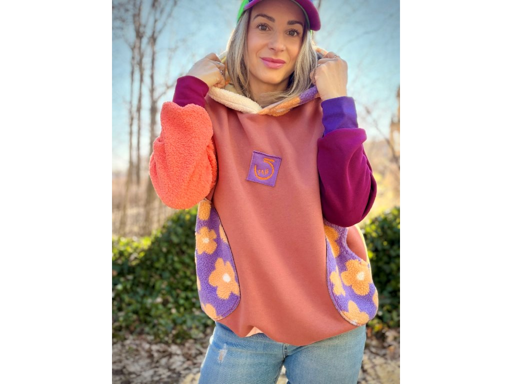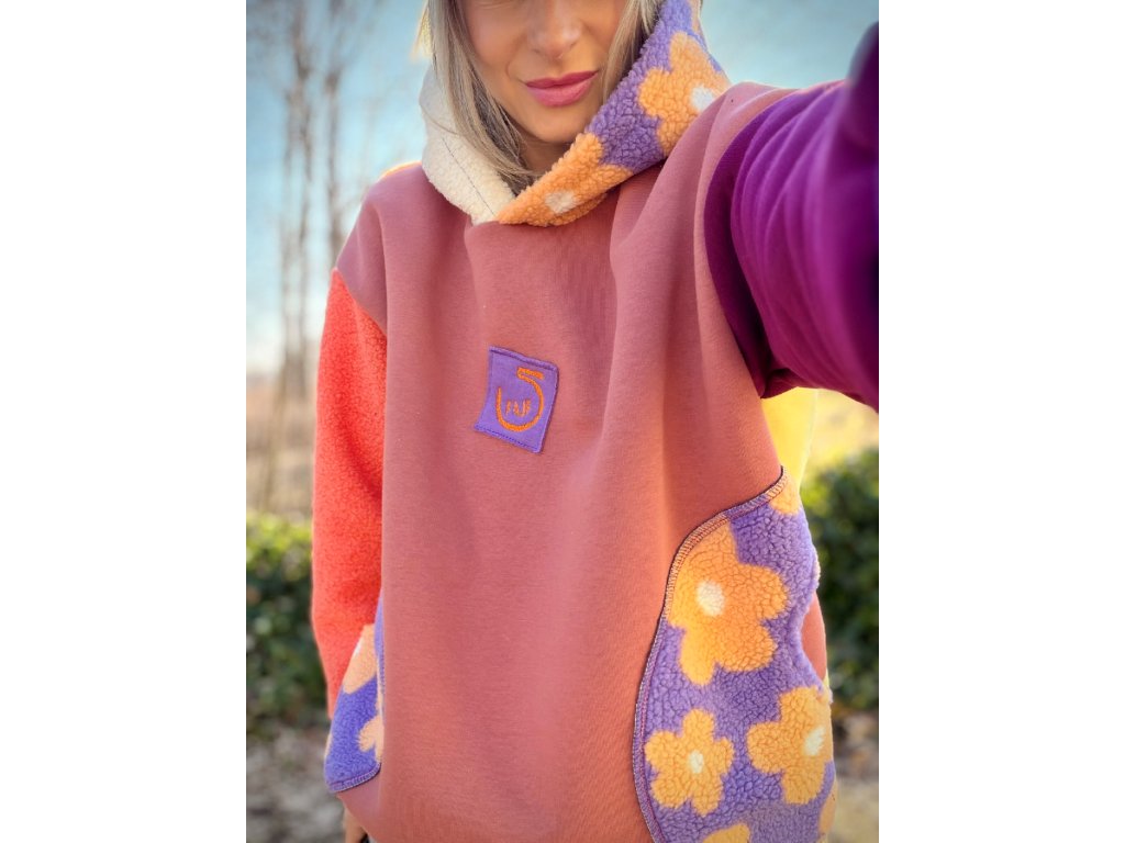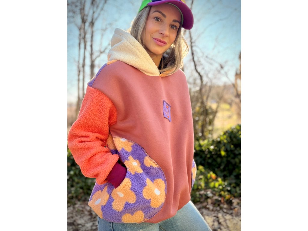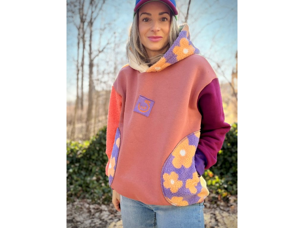 Tahle  originální mikina je přesně ten kousek, který si oblékneš jednou… a už nebudeš chtít sundat. Počesaná teplákovina kombinovaná s hebkým chlupatým materiálem a roztomilým květovým vzorem vytváří originální look, který zaujme na první pohled 🌷